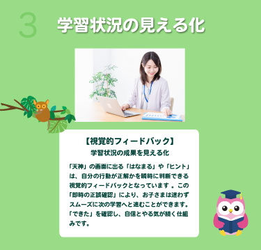 保護者様とお子様にご来塾いただきます。 ICT教材「天神」を使った学習環境を体験し、 お子様の特性や学習の様子を丁寧に確認します。