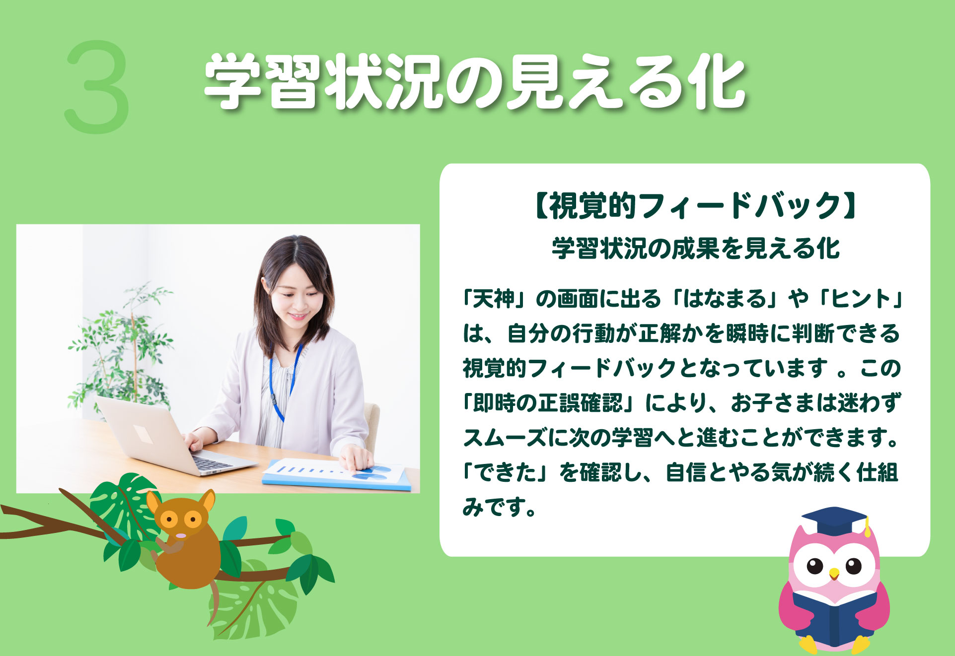 ICT教材を使い、一人ひとりに合った課題を設定し、 「できた」を積み重ねていきます。
